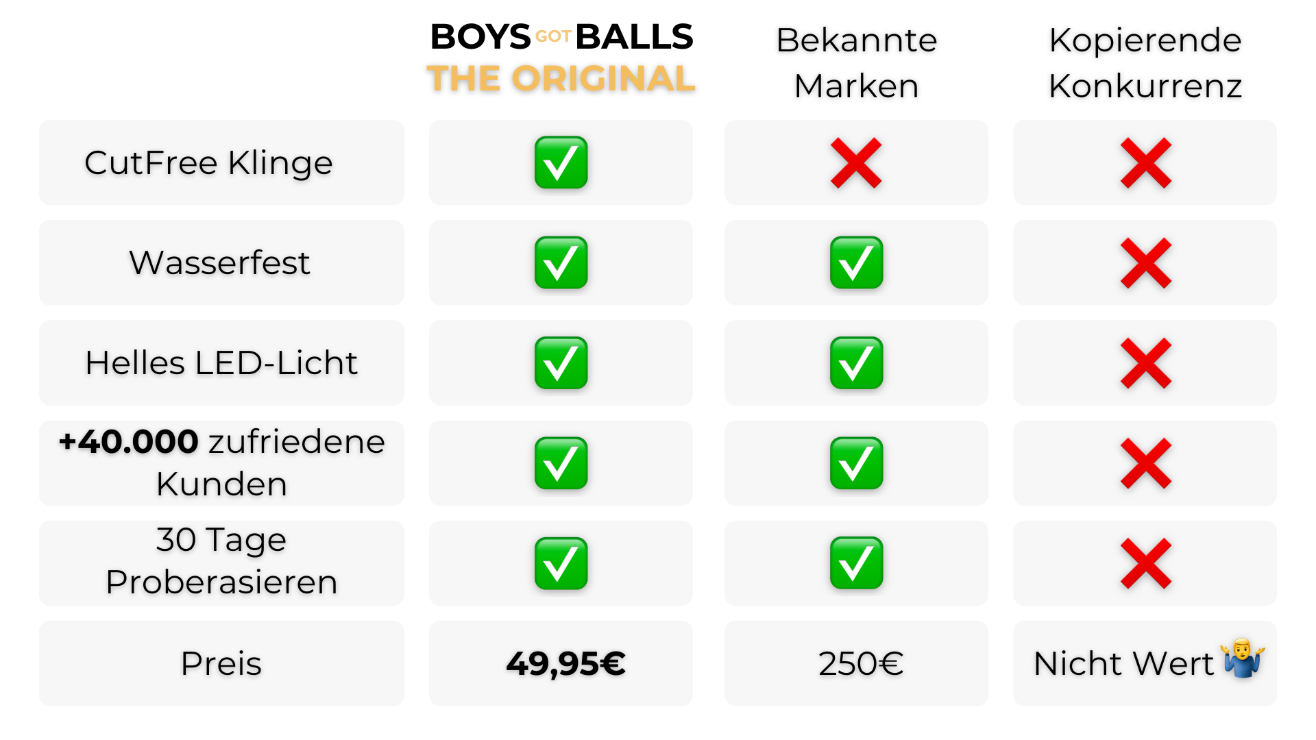 Bei BoysGotBalls™ sind wir davon überzeugt, dass wahre Männlichkeit in Selbstvertrauen und Selbstliebe liegt. Unser ORIGINAL soll nicht nur äußerliche Veränderungen bewirken, sondern auch das innere Strahlen jedes Mannes hervorheben.